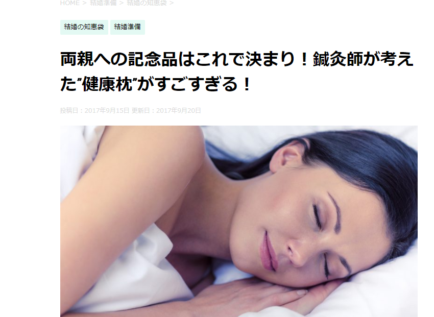 詳しい掲載記事はこちらをご覧下さい>>『両親への記念品はこれで決まり!鍼灸師が考えた”健康枕”がすごすぎる!』<<