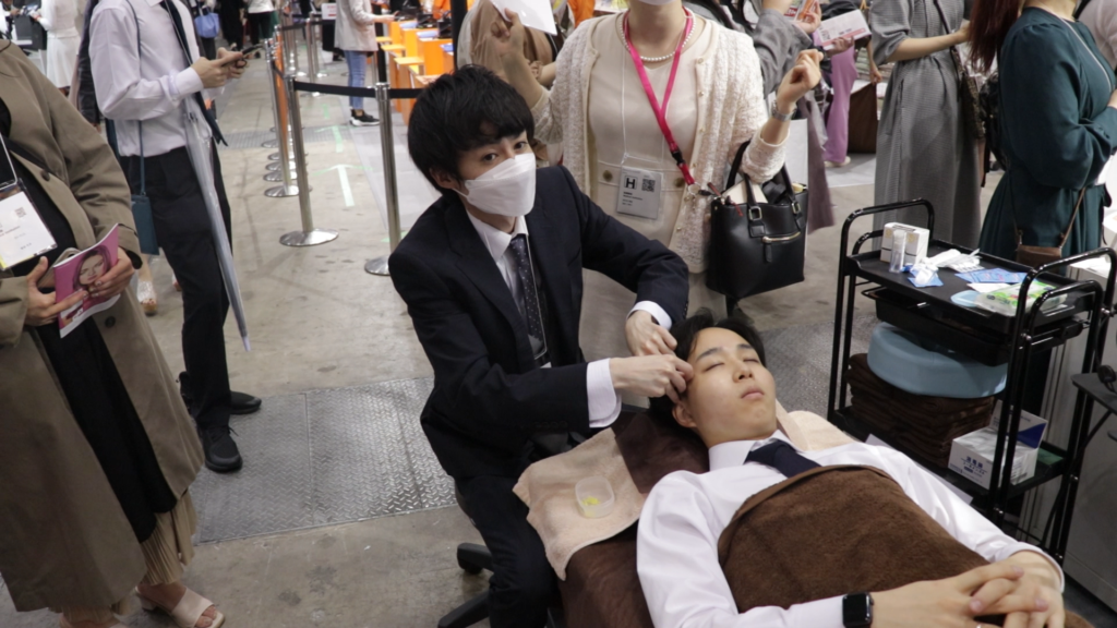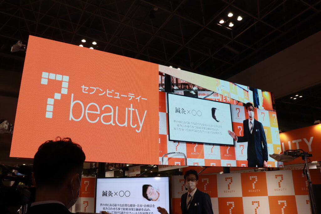 グラン治療院からも横浜スパイアス院 院長の川﨑と副院長の彦山も参加し、セブンビューティー様のブースにて美容鍼灸のデモンストレーションを行いました。
